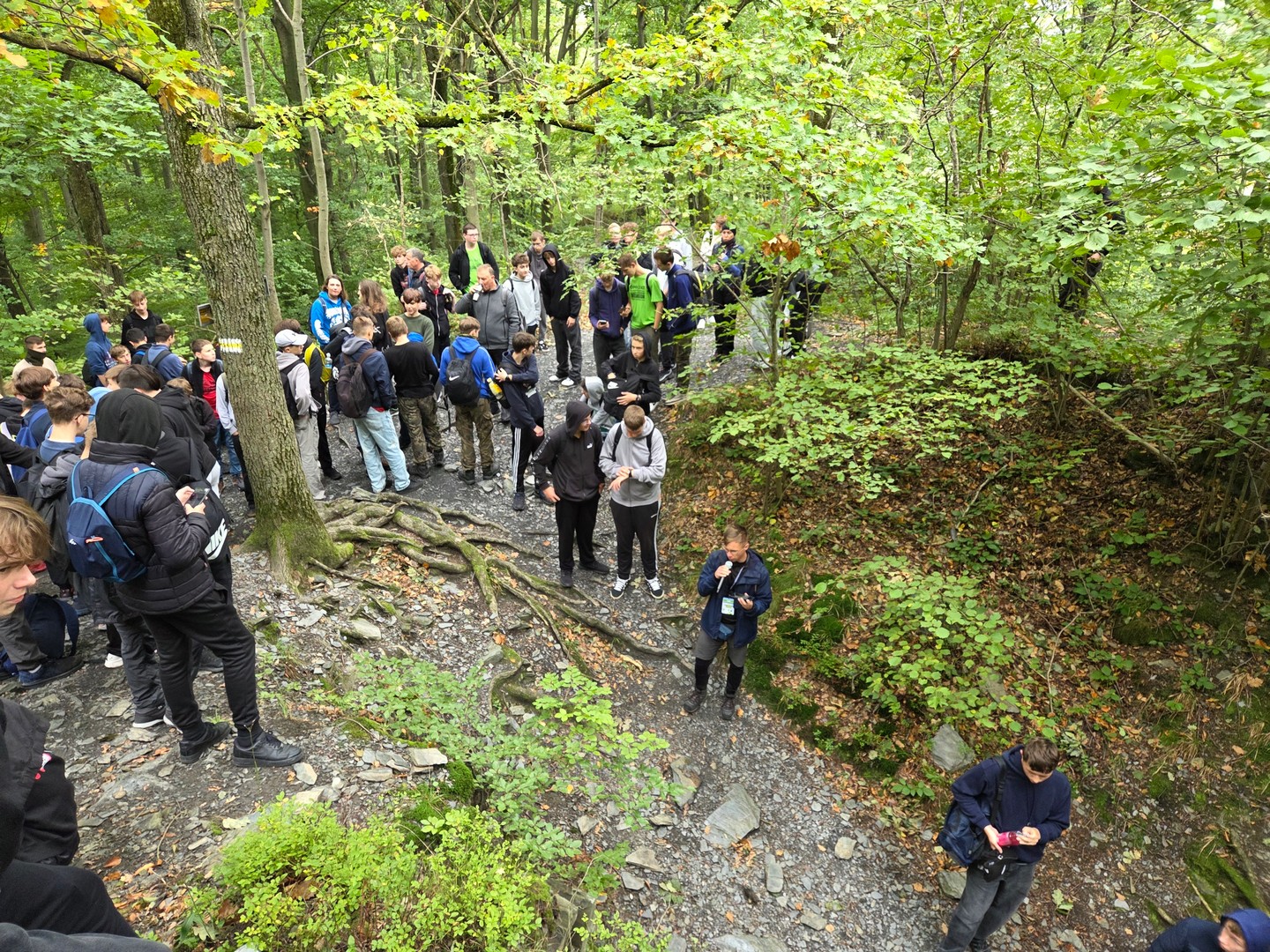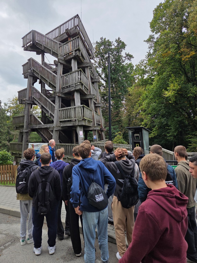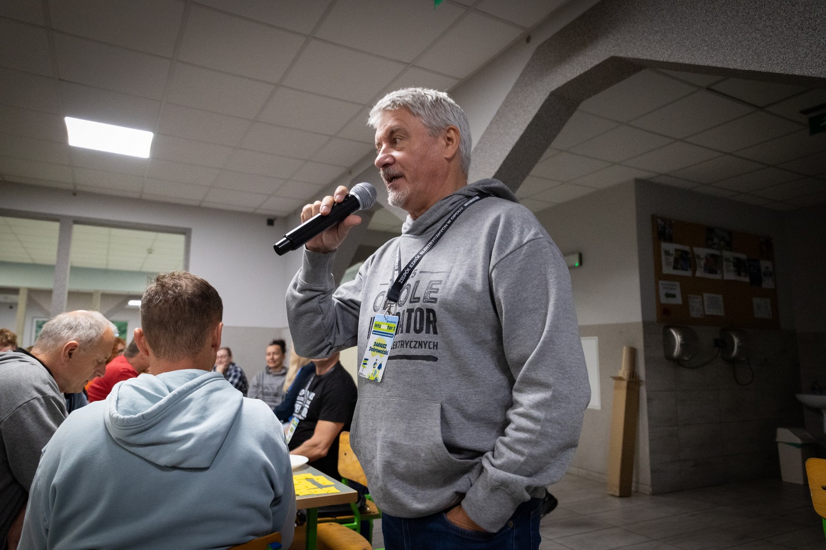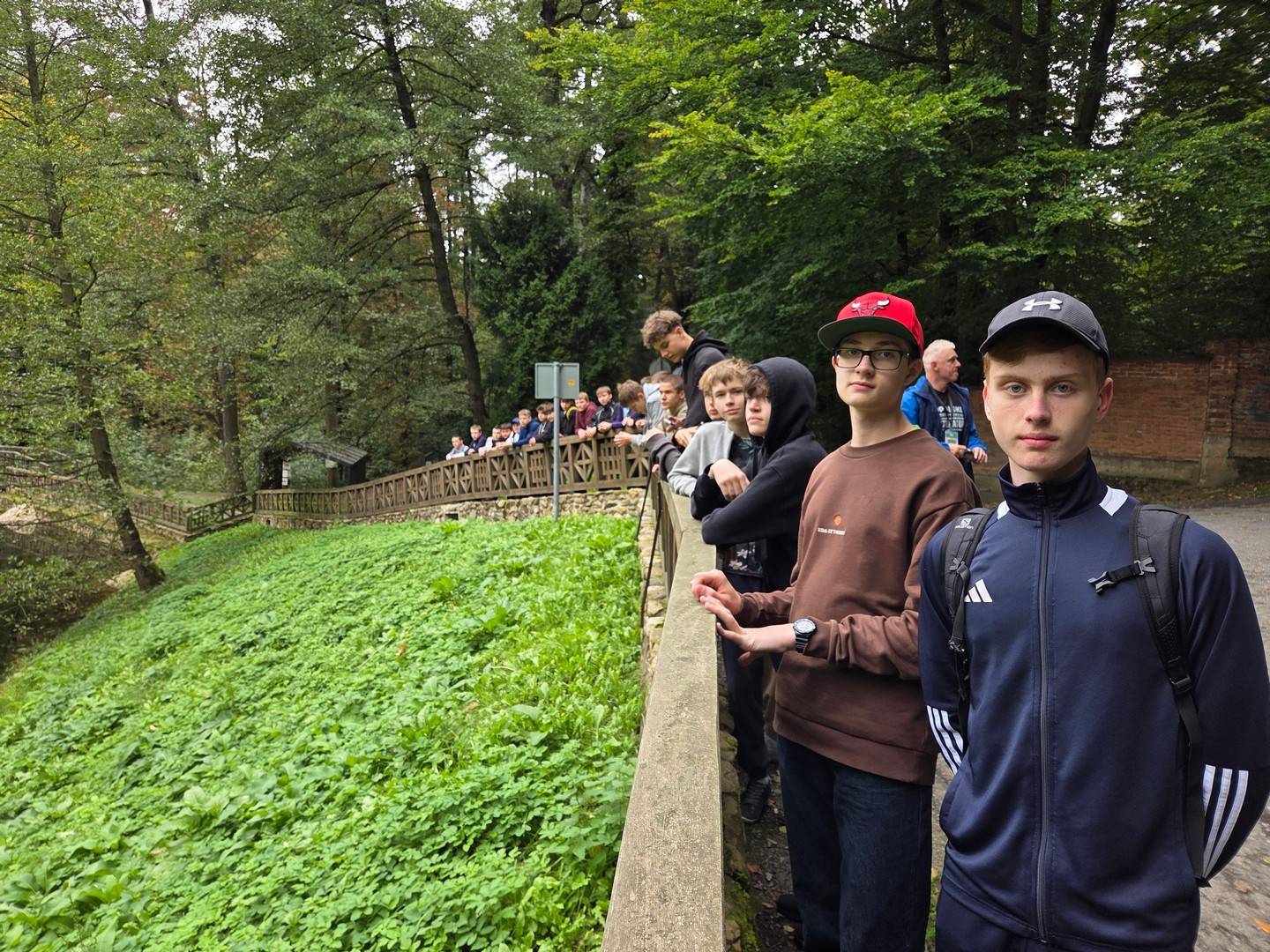 Drugi dzień rozpoczął się od spotkania z Dyrektorem Szkoły, który podkreślił wartość integracji i relacji między uczniami. Każda klasa przekazała na jego ręce przygotowany dzień wcześniej Kodeks Wartości. Jednym z najbardziej wyczekiwanych momentów było losowanie nagród, w tym prawdziwych rarytasów – piłki z autografem Łukasza Piszczka oraz piłki i zdjęć z podpisem Kuby Błaszczykowskiego. Emocji nie brakowało również podczas finałów sportowych, w których najlepsza okazała się klasa 1A, zwyciężając we wszystkich konkurencjach. Po obiedzie odbyła się niezwykła gra terenowa, która dostarczyła mnóstwo wrażeń. Uczniowie musieli zmierzyć się z różnorodnymi zadaniami – zagadkami logicznymi, łamigłówkami, zadaniami zręcznościowymi i wymagającymi spostrzegawczości, a także z próbami współpracy i kreatywności. Drużyny klasowe zbierały punkty, ale najważniejsza okazała się współpraca i dobra zabawa. Podczas gry terenowej uczniowie spotkali niezwykłą Osobę – pana Grzegorza Tomaszewskiego, jednego z więźniów obozu koncentracyjnego Auschwitz-Birkenau. W 1945 roku, mając zaledwie siedem lat, przeżył wojnę i wyzwolenie, stając się jednym z ostatnich żyjących świadków tamtych tragicznych wydarzeń. To spotkanie okazało się niezwykle cenną lekcją historii, której młodzież długo nie zapomni. Wieczorem odbył się pogodny wieczór – czas na planszówki, boisko i ping-pong.