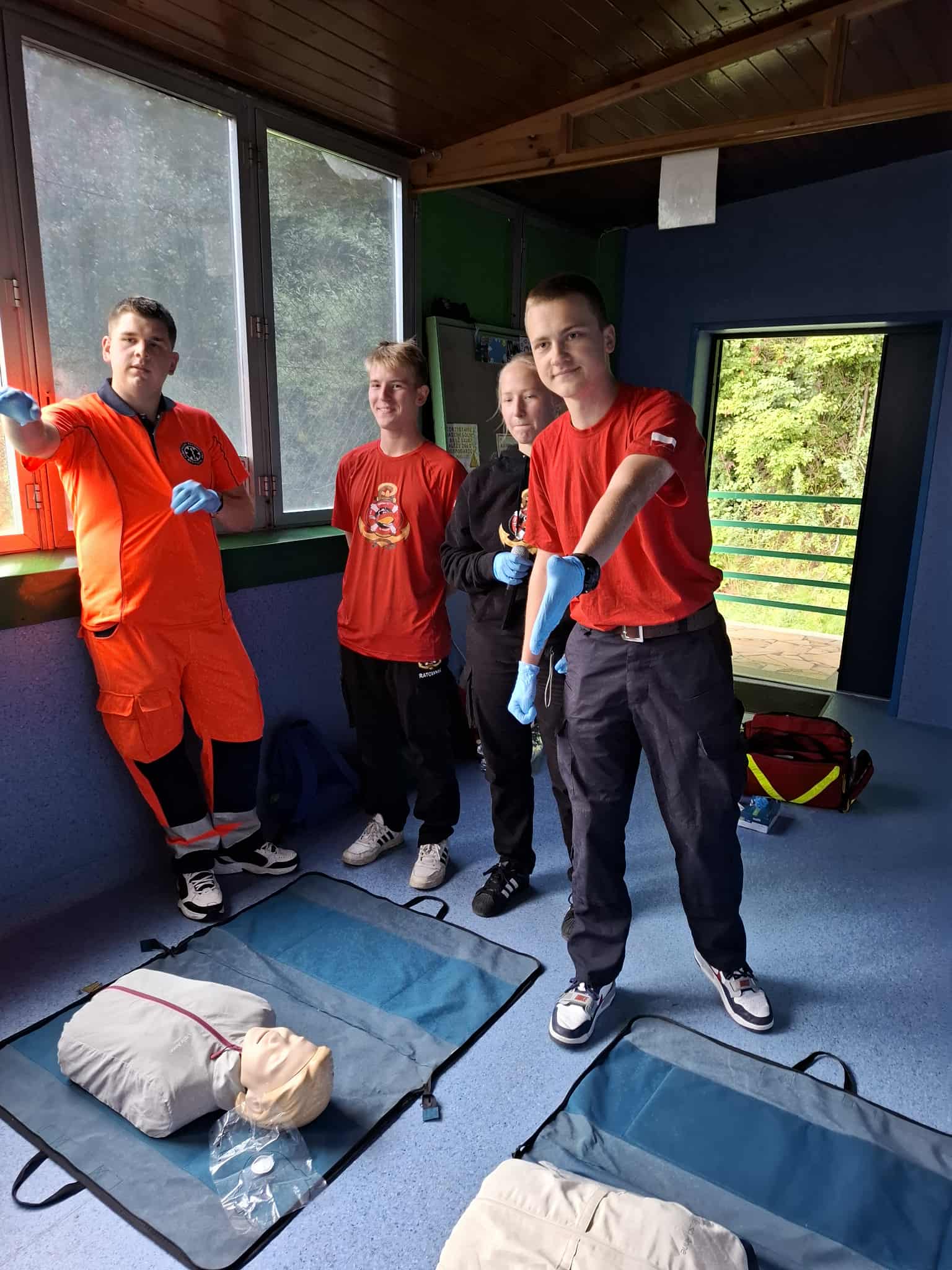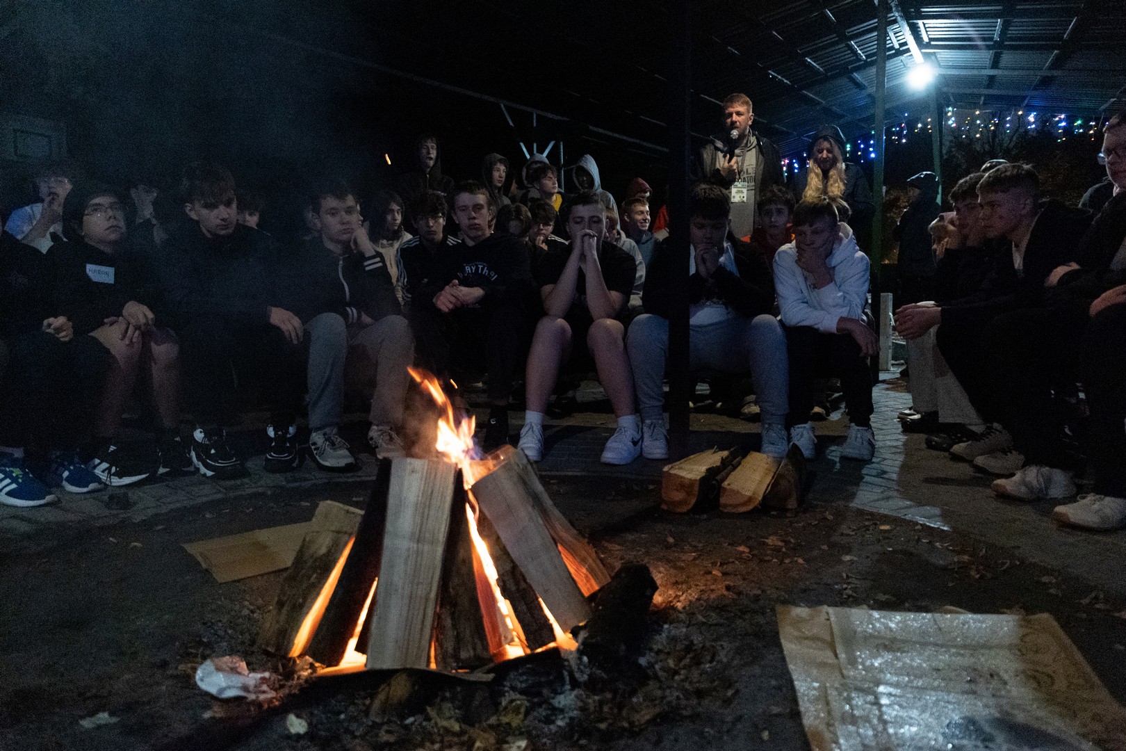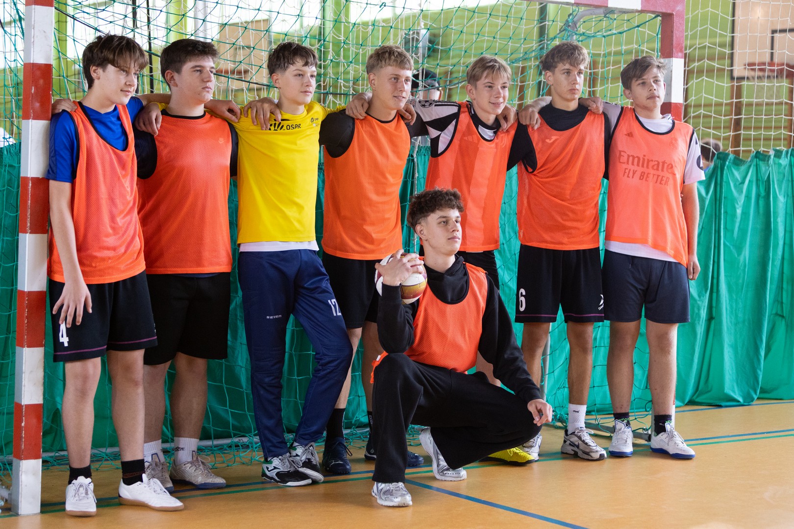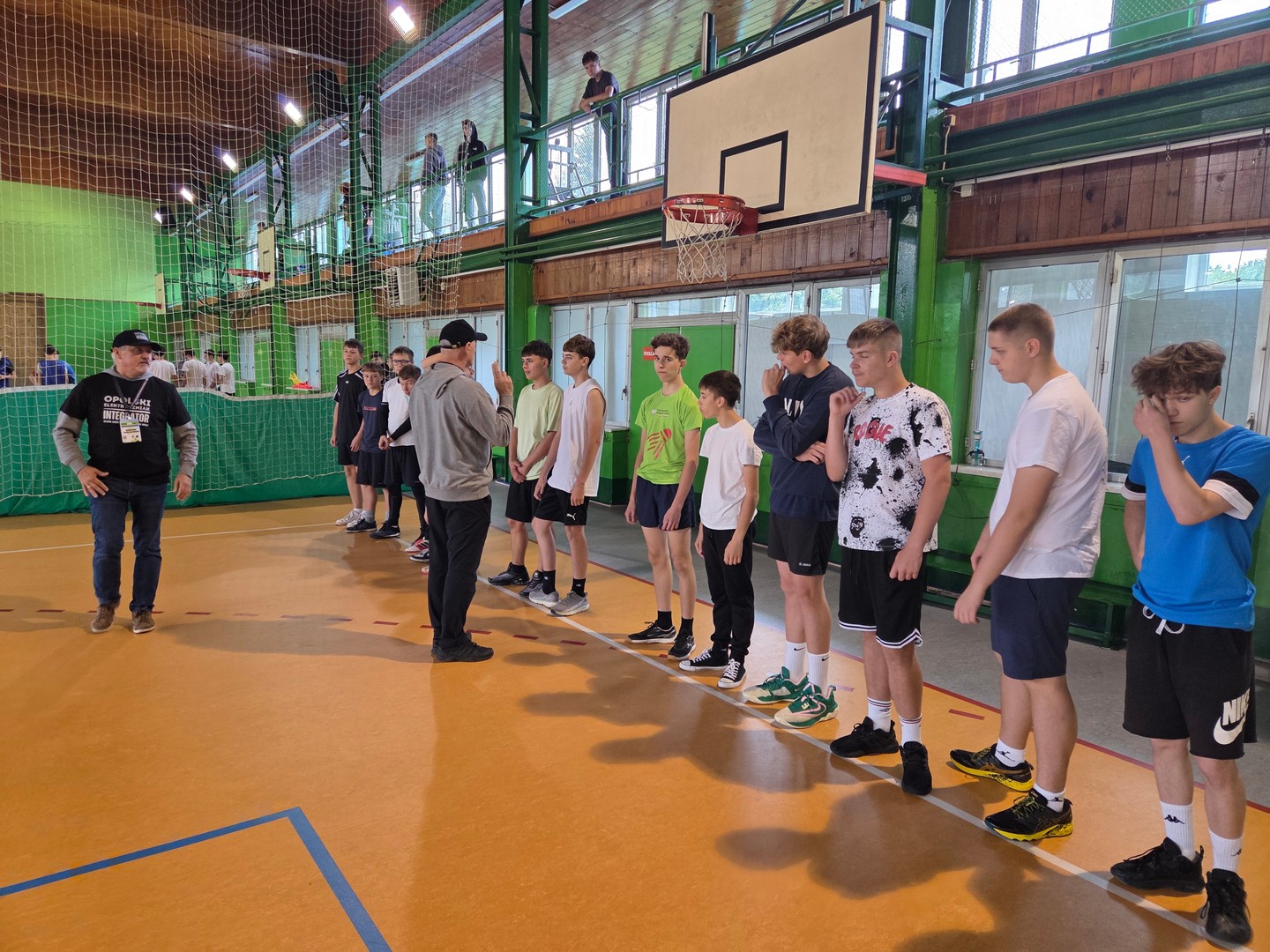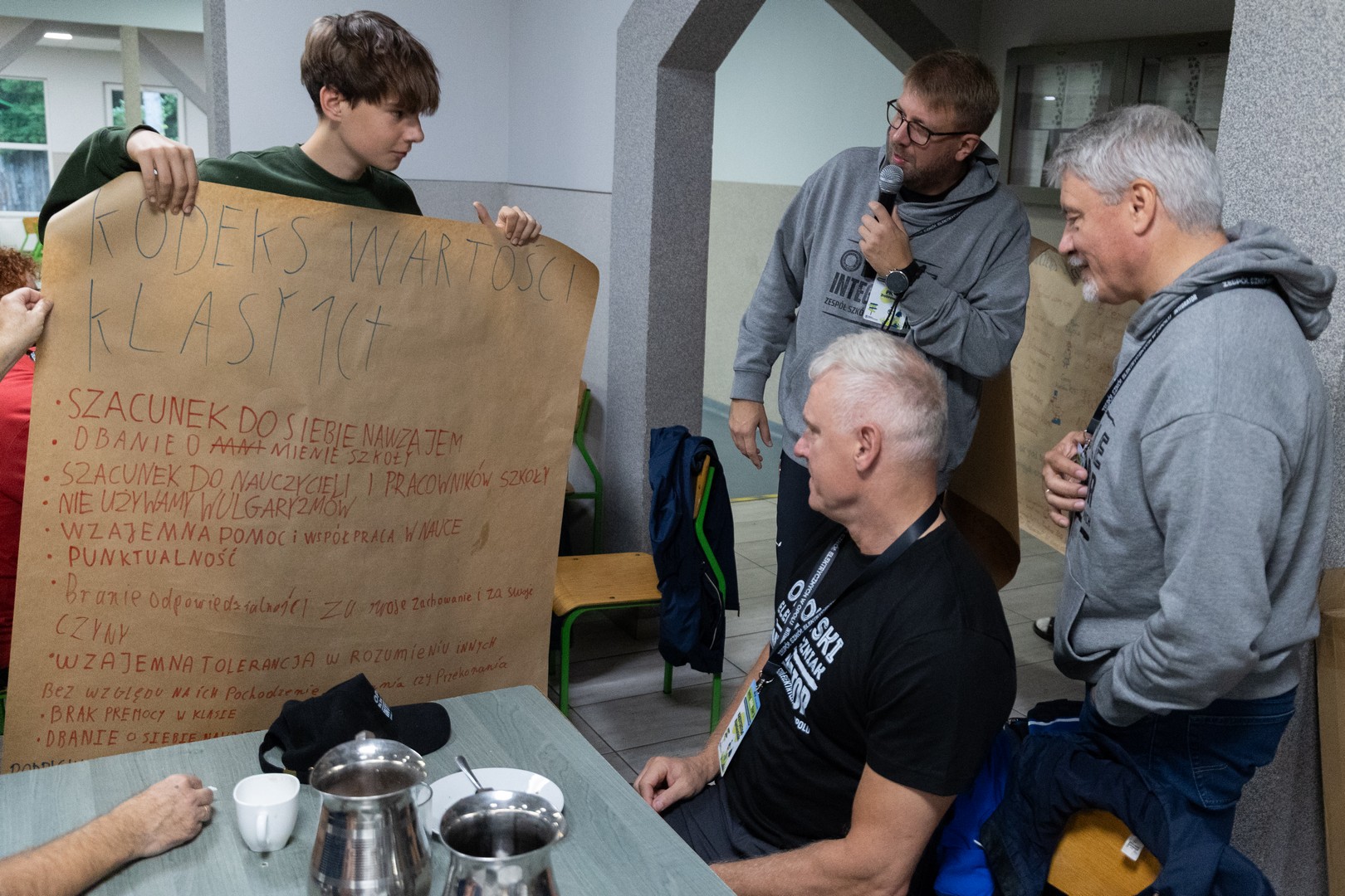 Zaraz po przyjeździe na uczniów czekało pierwsze zadanie integracyjne – związane z poznawaniem siebie nawzajem i swoich imion. Każdy uczestnik otrzymał identyfikator, a także pamiątkowy zestaw: koszulkę z logiem Integratora oraz worek sportowy. To był świetny początek wspólnej przygody, który od razu wprowadził atmosferę współpracy i otwartości. Na uczniów czekały także turnieje sportowe w siatkówkę, koszykówkę, piłkę nożną i szachy. Dawno nie było tak wyrównanych rozgrywek – poziom rywalizacji okazał się naprawdę wysoki, a emocje towarzyszące meczom były zupełnie prawdziwe. Dużym zainteresowaniem cieszyły się również warsztaty pierwszej pomocy przeprowadzone przez szkolną grupę ratowniczą. Po obiedzie przyszedł czas na sesję zdjęciową – uczniowie w nowych koszulkach stworzyli kolorową, pełną energii ekipę. Następnie wspólnie z wychowawcami przygotowali Kodeksy Deklaracji Wartości, które będą im towarzyszyć w kolejnych latach nauki. Wieczór zakończył się przy ognisku – w atmosferze rozmów, śmiechu i budowania relacji.