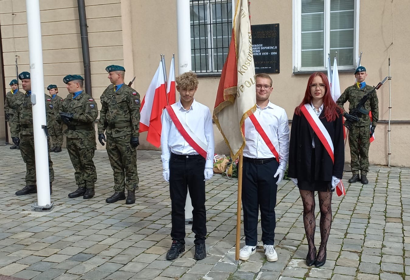 Uroczystości odbyły się pod tablicą upamiętniającą Sybiraków przy Ratuszu w Opolu, gdzie obecny był poczet sztandarowy Zespołu Szkół Elektrycznych w Opolu w składzie: Maciej Machura z klasy 5ET, Victoria Polańska z klasy 3DT i Daniel Skiba z klasy 1BT, pod opieką Jarosława Stykały.