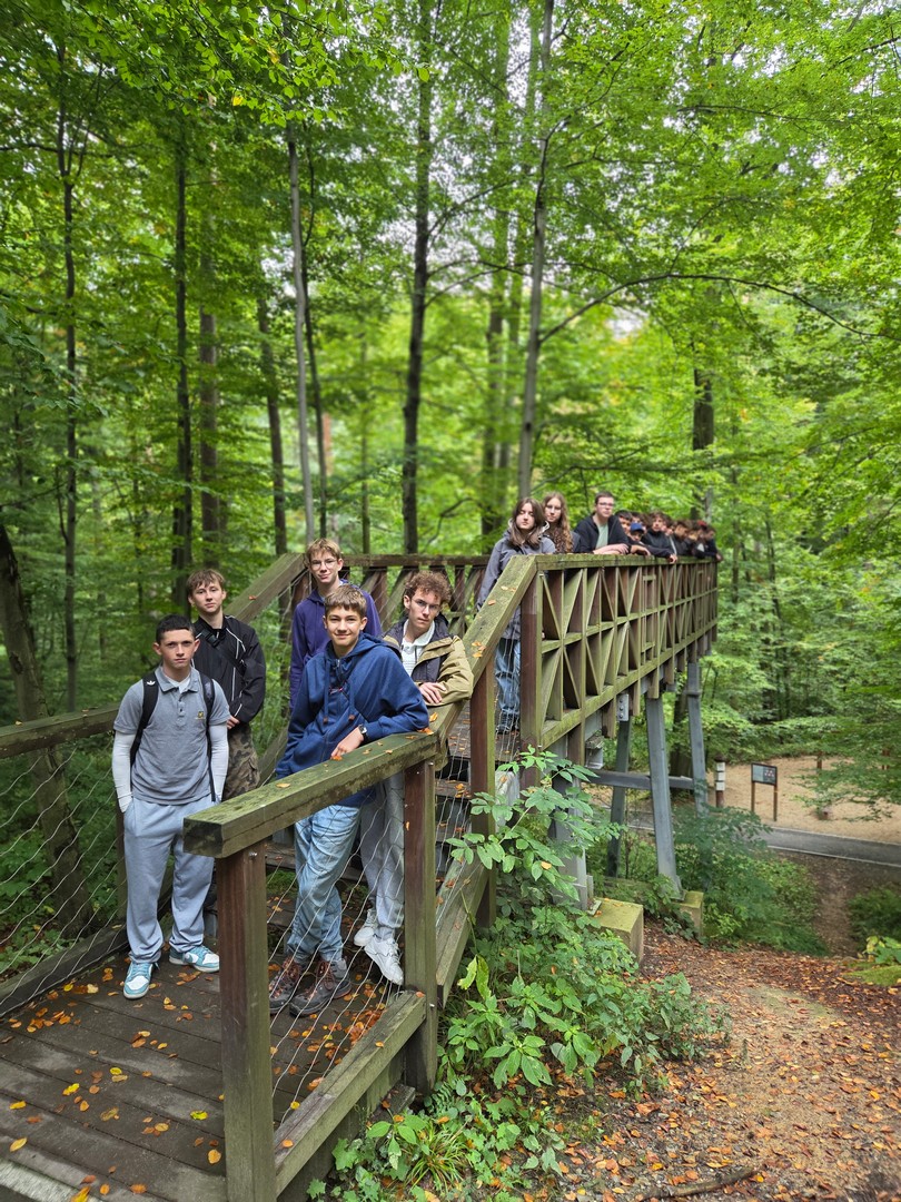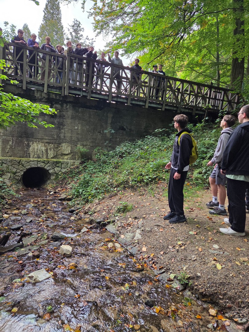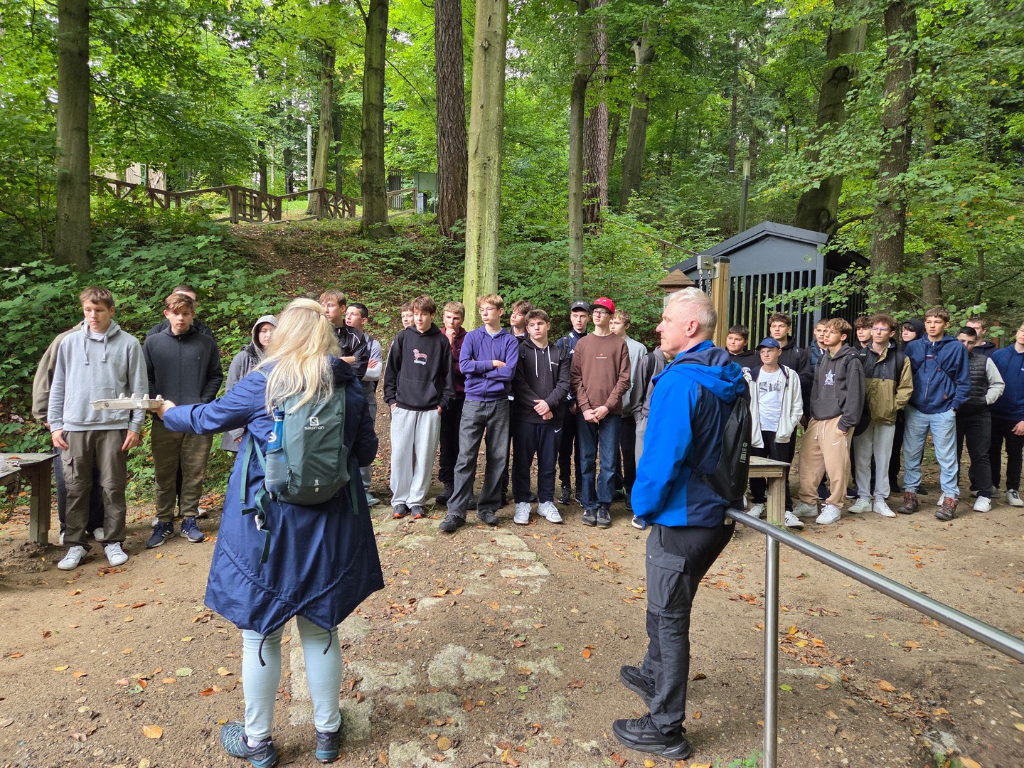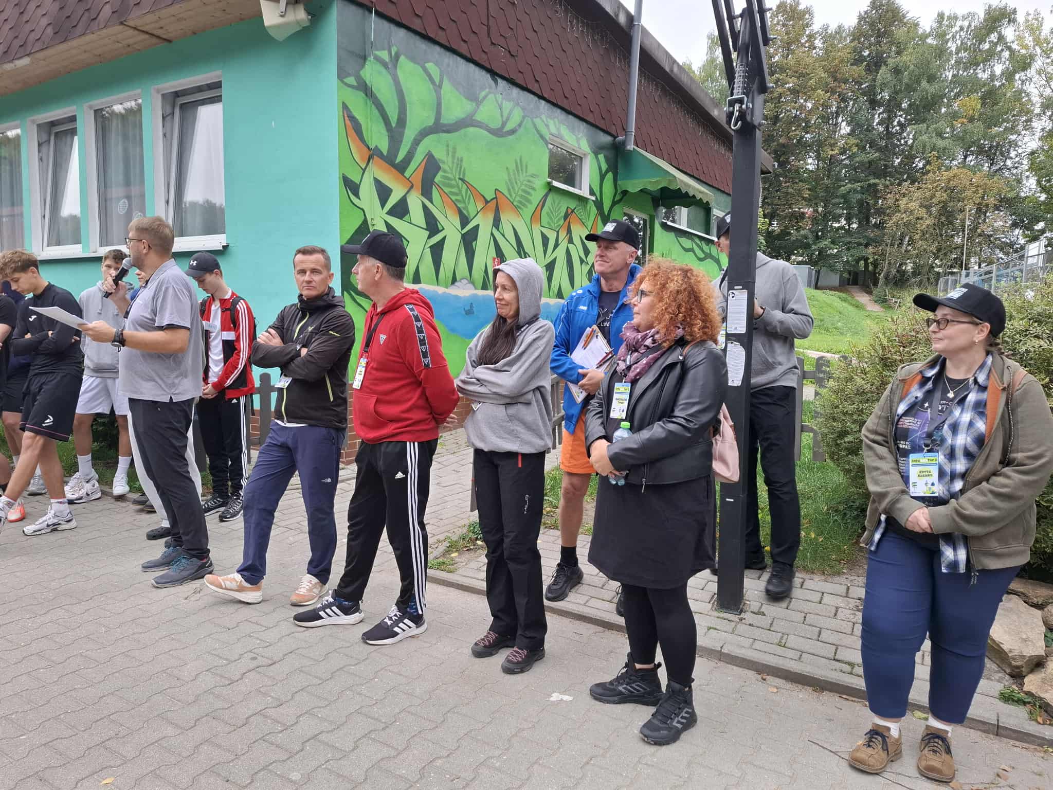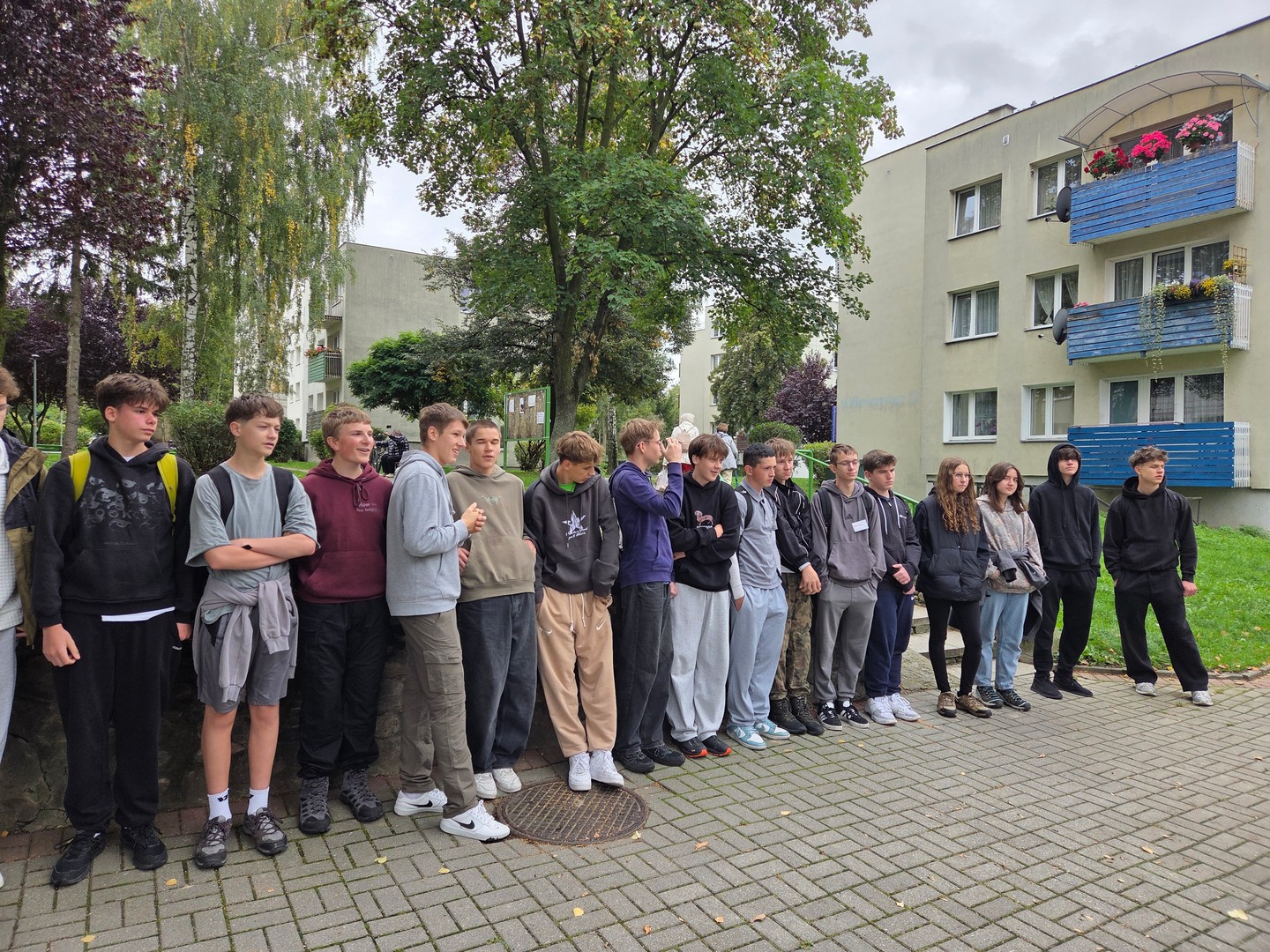 Drugi dzień rozpoczął się od spotkania z Dyrektorem Szkoły, który podkreślił wartość integracji i relacji między uczniami. Każda klasa przekazała na jego ręce przygotowany dzień wcześniej Kodeks Wartości. Jednym z najbardziej wyczekiwanych momentów było losowanie nagród, w tym prawdziwych rarytasów – piłki z autografem Łukasza Piszczka oraz piłki i zdjęć z podpisem Kuby Błaszczykowskiego. Emocji nie brakowało również podczas finałów sportowych, w których najlepsza okazała się klasa 1A, zwyciężając we wszystkich konkurencjach. Po obiedzie odbyła się niezwykła gra terenowa, która dostarczyła mnóstwo wrażeń. Uczniowie musieli zmierzyć się z różnorodnymi zadaniami – zagadkami logicznymi, łamigłówkami, zadaniami zręcznościowymi i wymagającymi spostrzegawczości, a także z próbami współpracy i kreatywności. Drużyny klasowe zbierały punkty, ale najważniejsza okazała się współpraca i dobra zabawa. Podczas gry terenowej uczniowie spotkali niezwykłą Osobę – pana Grzegorza Tomaszewskiego, jednego z więźniów obozu koncentracyjnego Auschwitz-Birkenau. W 1945 roku, mając zaledwie siedem lat, przeżył wojnę i wyzwolenie, stając się jednym z ostatnich żyjących świadków tamtych tragicznych wydarzeń. To spotkanie okazało się niezwykle cenną lekcją historii, której młodzież długo nie zapomni. Wieczorem odbył się pogodny wieczór – czas na planszówki, boisko i ping-pong.