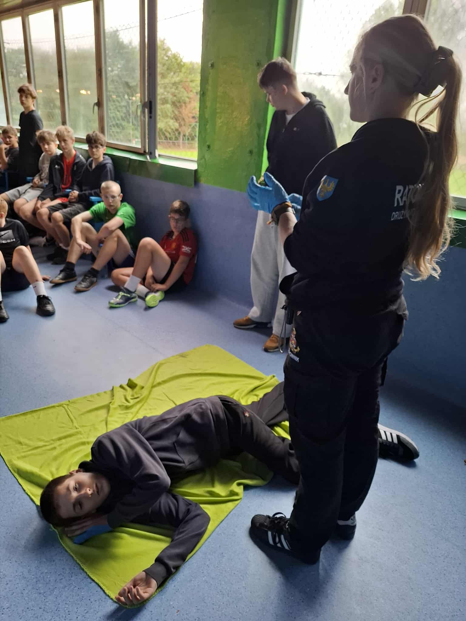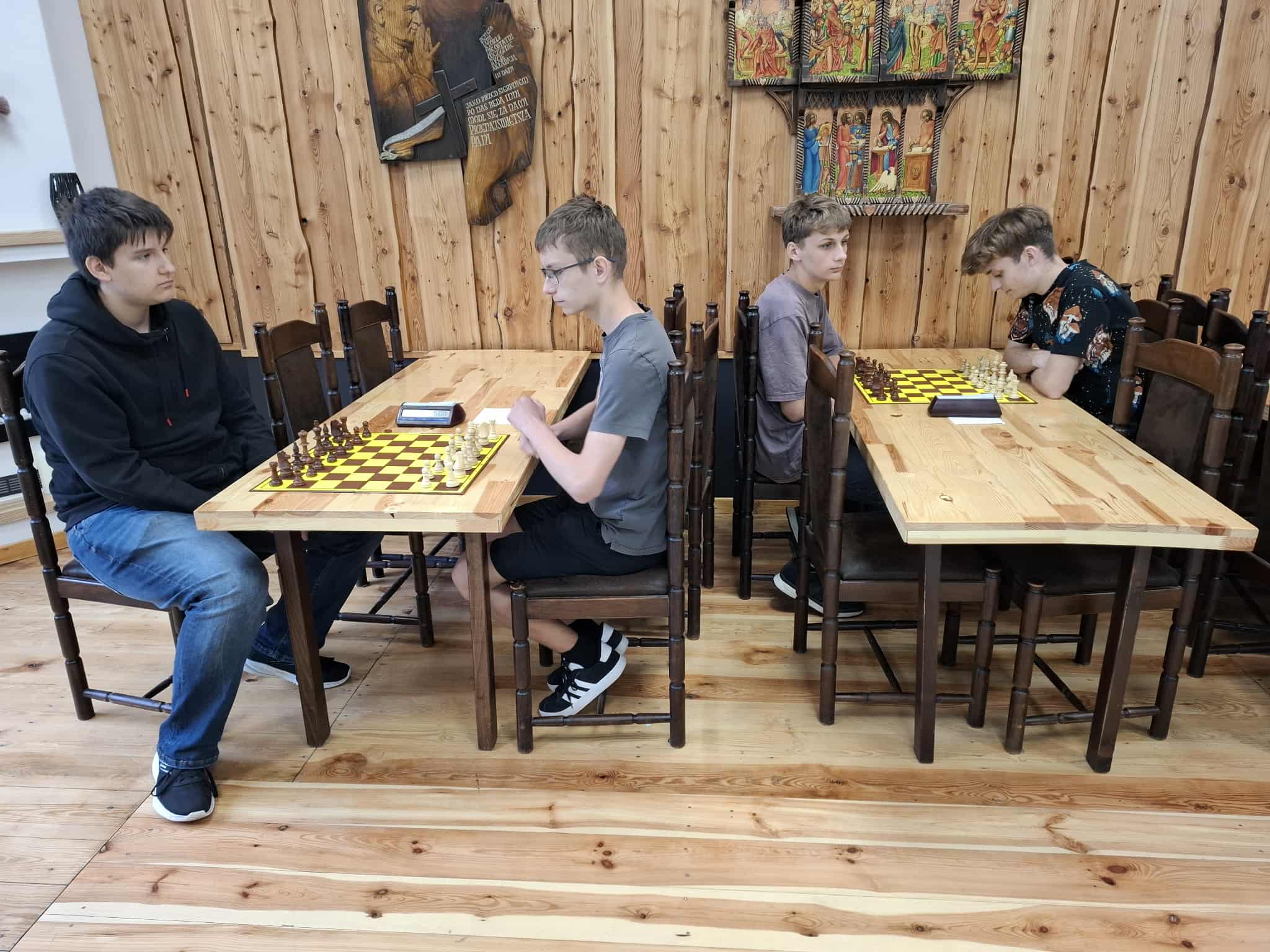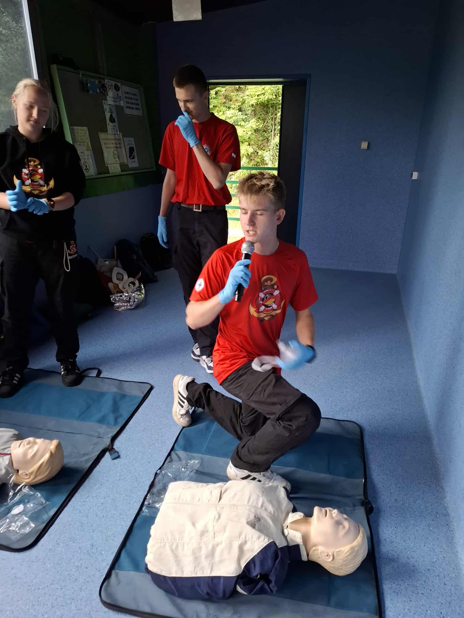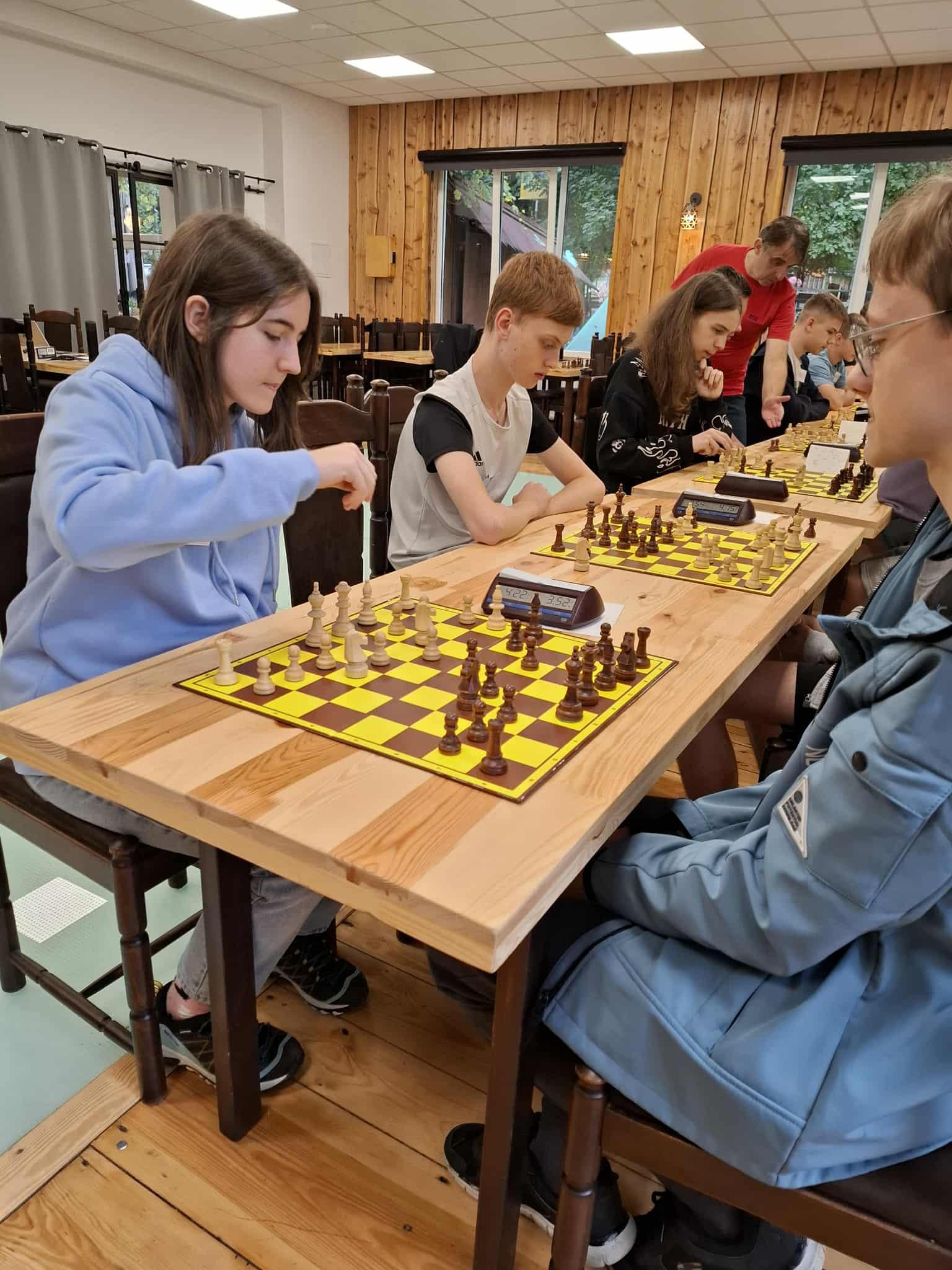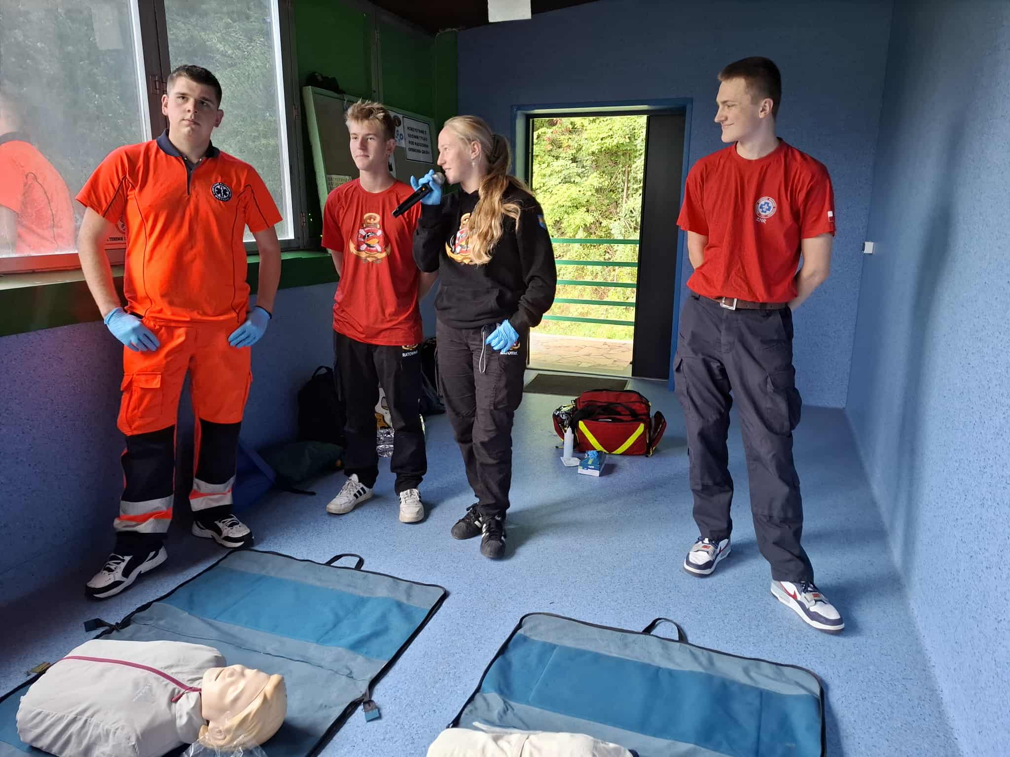 Zaraz po przyjeździe na uczniów czekało pierwsze zadanie integracyjne – związane z poznawaniem siebie nawzajem i swoich imion. Każdy uczestnik otrzymał identyfikator, a także pamiątkowy zestaw: koszulkę z logiem Integratora oraz worek sportowy. To był świetny początek wspólnej przygody, który od razu wprowadził atmosferę współpracy i otwartości. Na uczniów czekały także turnieje sportowe w siatkówkę, koszykówkę, piłkę nożną i szachy. Dawno nie było tak wyrównanych rozgrywek – poziom rywalizacji okazał się naprawdę wysoki, a emocje towarzyszące meczom były zupełnie prawdziwe. Dużym zainteresowaniem cieszyły się również warsztaty pierwszej pomocy przeprowadzone przez szkolną grupę ratowniczą. Po obiedzie przyszedł czas na sesję zdjęciową – uczniowie w nowych koszulkach stworzyli kolorową, pełną energii ekipę. Następnie wspólnie z wychowawcami przygotowali Kodeksy Deklaracji Wartości, które będą im towarzyszyć w kolejnych latach nauki. Wieczór zakończył się przy ognisku – w atmosferze rozmów, śmiechu i budowania relacji.