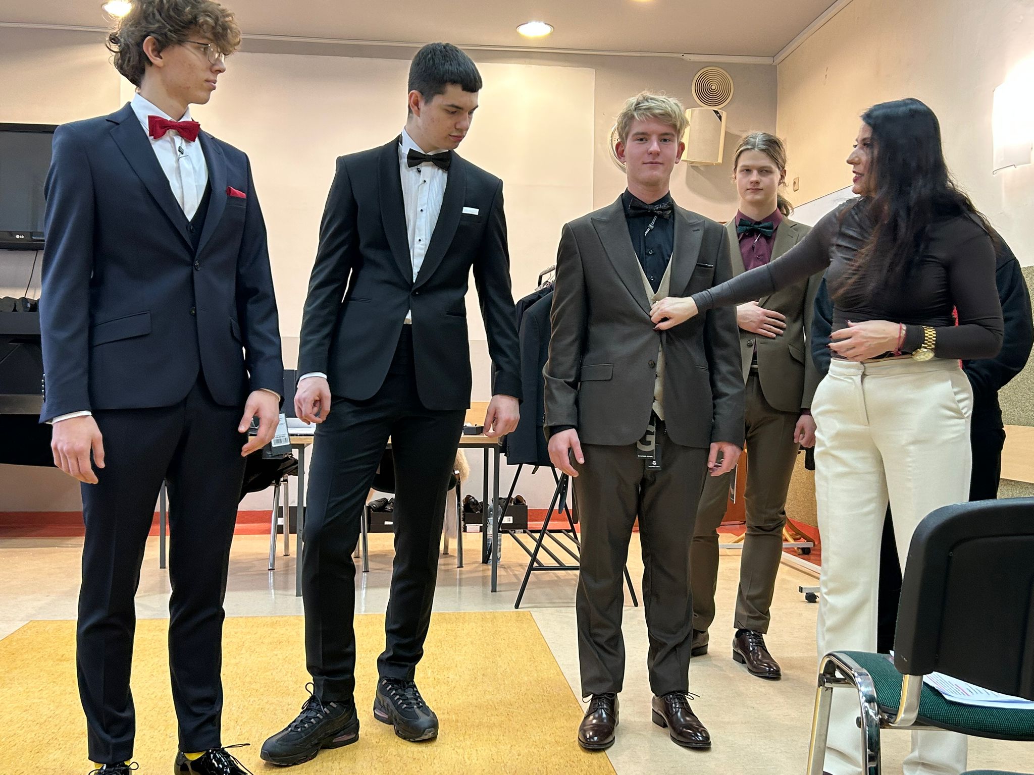 W związku ze zbliżającą się studniówką, uczniowie klas piątych mieli możliwość udziału w niecodziennej lekcji wychowawczej, na której gościli stylistki salonu Giacomo Conti oferującego markową odzież męską.