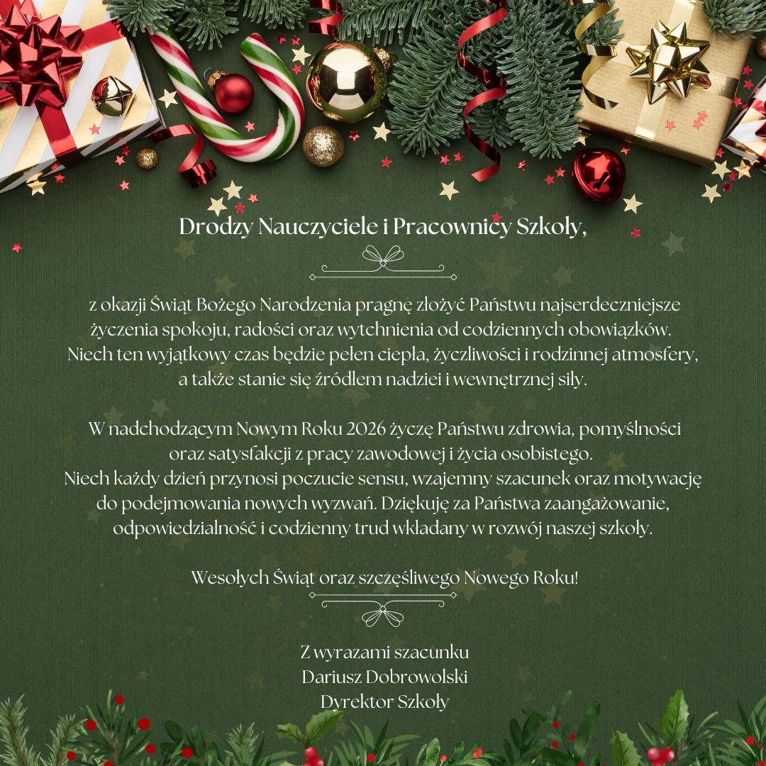 Życzenia Dyrektora Zespołu Szkół Elektrycznych z okazji Świąt Bożego Narodzenia.