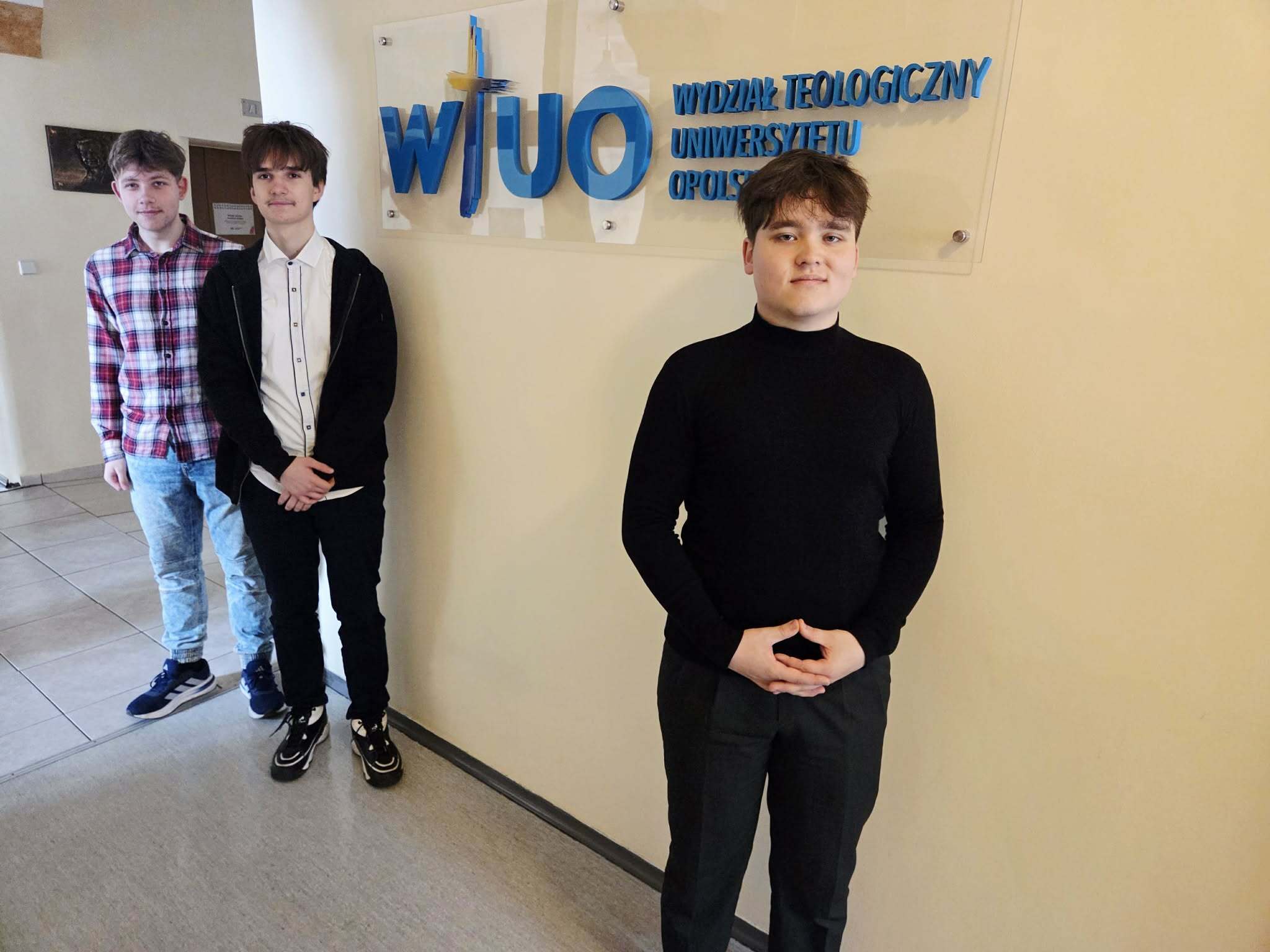 W środę, 15 kwietnia 2026 r., na Wydziale Teologicznym Uniwersytetu Opolskiego odbył się etap wojewódzki Ogólnopolskiego Konkursu Wiedzy Biblijnej. To duży sukces uczniów naszej szkoły, bowiem do tego etapu zakwalifikowało się trzech uczniów: Aleksander Skłosz (kl. 1at), Dominik Muszkiet (kl. 1dt) oraz Franciszek Hanulewicz (kl. 5at).