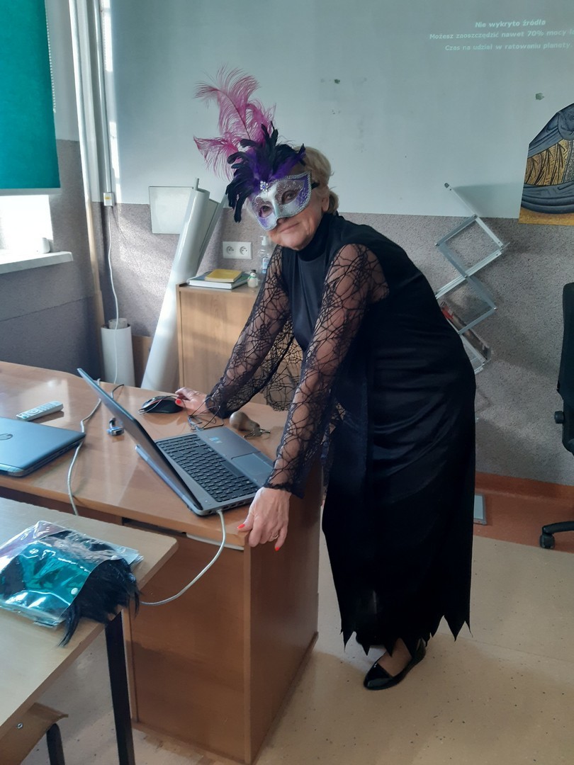 Na korytarzu szkolnym można było spotkać wiele ciekawych postaci. Podczas lekcji można było obejrzeć prezentację na temat Karnawału. W pokoju nauczycielskim również panował karnawałowy nastrój .